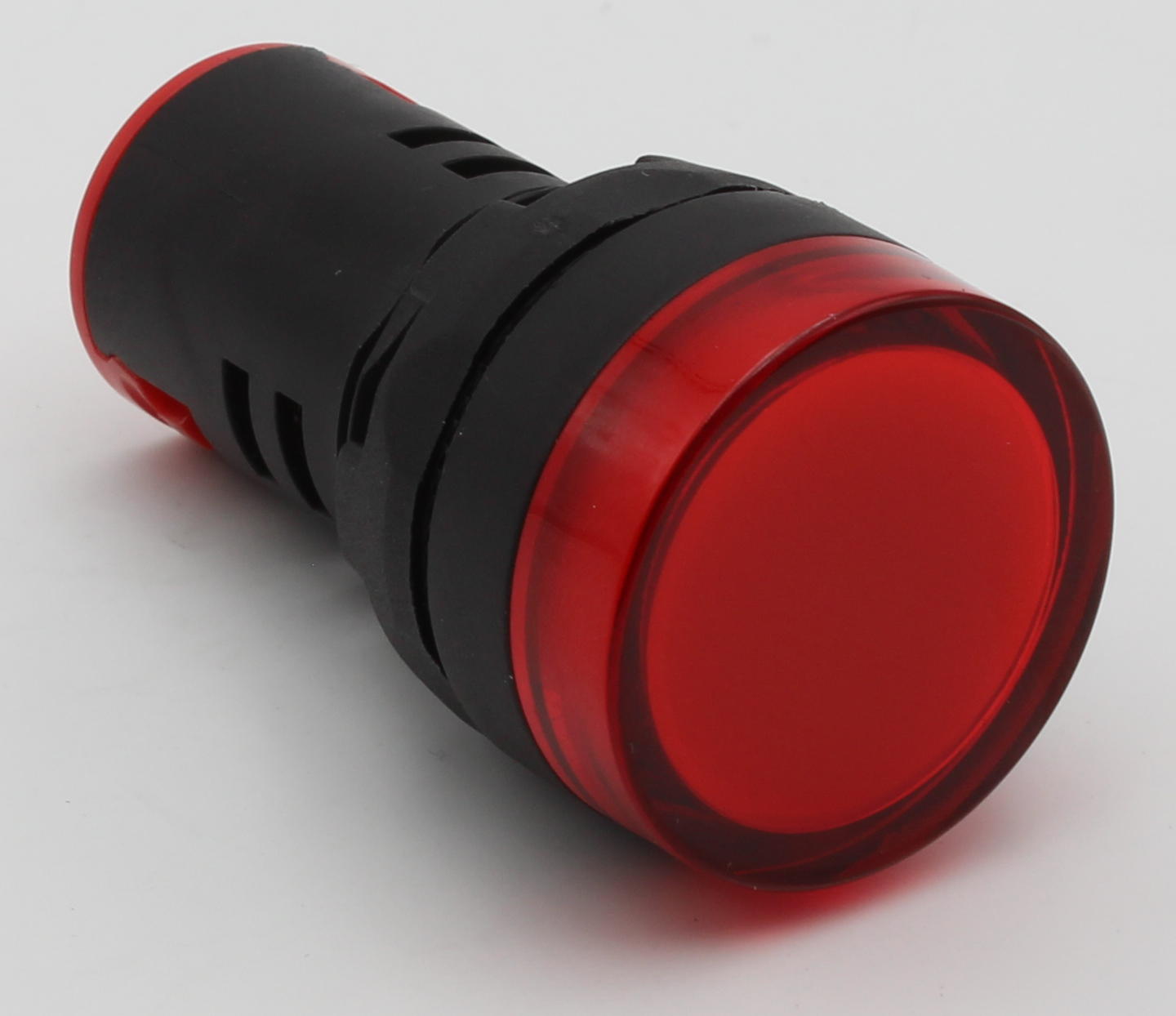 Rood of groene ledlamp, 12V, 24V of 220V gat 22mm, ring 29mm, diepte 32mm